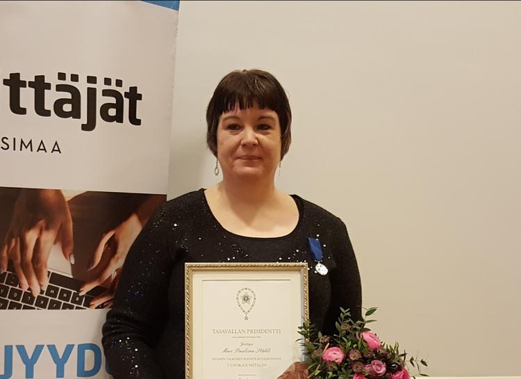 Mari Ståhlsille Suomen Valkoisen Ruusun I luokan mitali