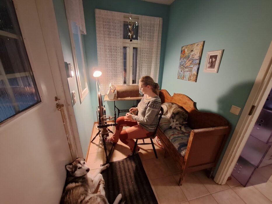 – Alaskanmalamuuteista tulee niin suuria määriä karvaa, että minulla riittäisi pelkästään niistä kehrättävää koko loppuiäkseni, Pyhtilä naurahtaa.