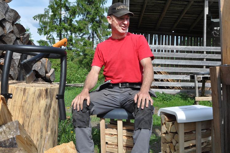 – Selkä kiittää, ja työskentely on myös entistä tehokkaampaa. Halkoja ei tarvitse noukkia maasta vähän väliä, vaan ne kaikki jäävät rinkulan sisälle.