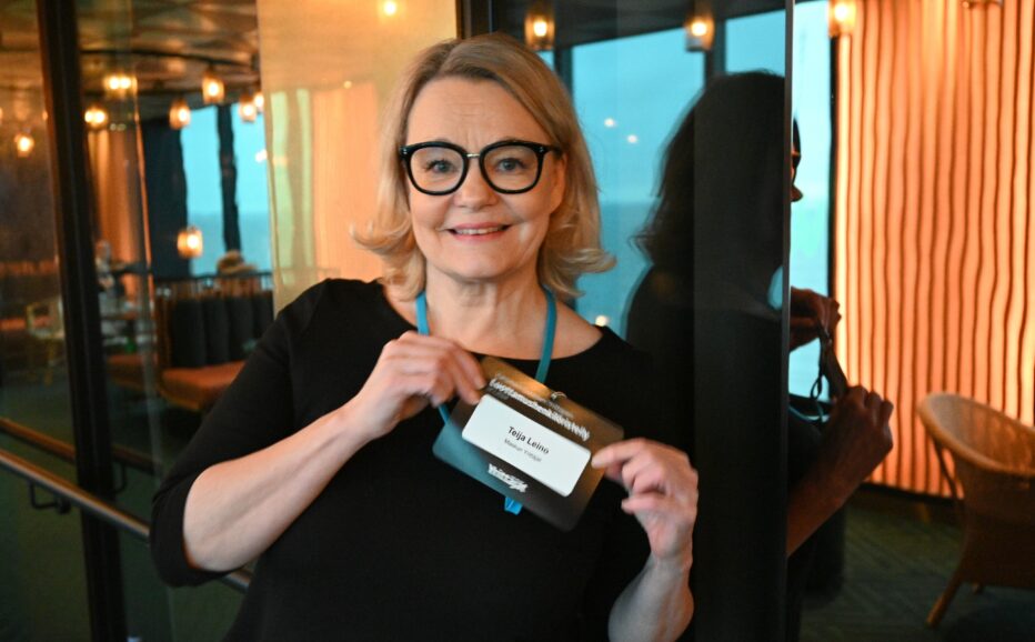 Maskun Yrittäjien puheenjohtaja Teija Leino kuvattiin Varsinais-Suomen Yrittäjien Luottamushenkilöristeilyllä 14.1.2024.