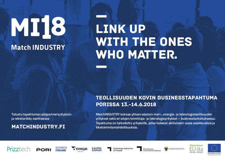 MatchINDUSTRY on teollisuuden kontakti- ja neuvottelutapahtuma, jossa meri- ja teknologiateollisuuden yritykset vahvistavat toimittajaketjuaan sekä kartoittavat uusia liiketoiminta- ja teknologiapartnereita.