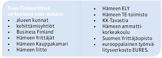 Kanta-Hämeessä toimii aktiivinen yhteistyöverkosto Team Finland Häme. Töitä tehdään maakunnan kasvun ja kansainvälistymisen puolesta.