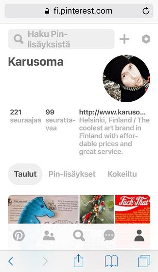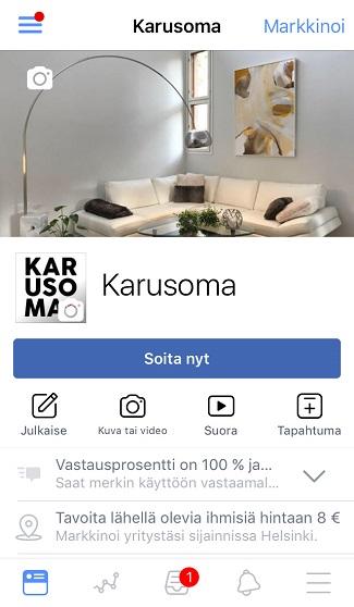 Kannattaa miettiä, millä kielellä eri some-kanaviin panostaa. Karusoman Facebook-sivusto on suomeksi, mutta Instagramissa kieli vaihtuu englanniksi. Panosta mieluummin yhteen hyvin kuin moneen heikosti, sillä kaikkiin some-kanaviin ei pienyrittäjä pysty tuottamaan hyvää materiaalia. Mainoksiksi kannattaa nostaa vain oikeasti mielenkiintoiset uutiset, jotka poikivat kommentteja ja tykkäyksiä ja nousevat uutisvirtoihin tehokkaammin.