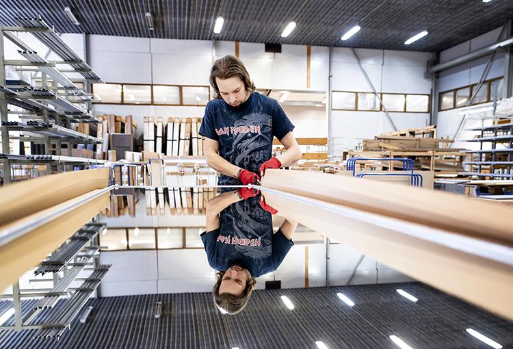 Lisää tilaa tarvitaan tuotantoon, jotta se sujuisi mahdollisimman hyvin. Tehtaalla on myös poikkeuksellisen suuri varasto, sillä mittatilaustyöt edellyttävät sitä, että kaikkia materiaaleja on hyllyllä valmiina. Toimitusajaksi luvataan yhdestä kahteen viikkoon.
