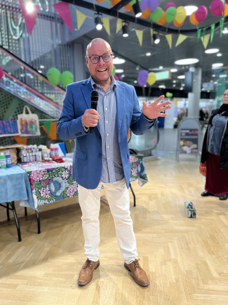 Yrittäjä, trubaduuri ja joulupukki Mikko Kartano vie joulun sanomaa myös kouluihin yrittäessään vaikuttaa koulukiusaamiseen.