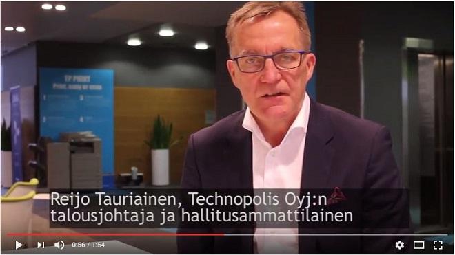 Technopolis Oyj:n talousjohtaja (heinäkuuhun asti) Reijo Tauriainen haluaa edistää kasvuyritysten menestymistä hyödyntämällä pitkäaikaista kokemustaan talousjohtajuudesta pörssiyhtiössä ja tarjoaa apuansa kasvuyritysten käyttöön. Juttu jatkuu videon alapuolella.