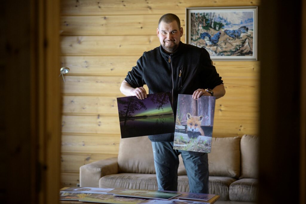 Sisätiloissa Mäkiranta esittelee tauluja, joihin on painettu hänen ottamiaan luontovalokuvia.