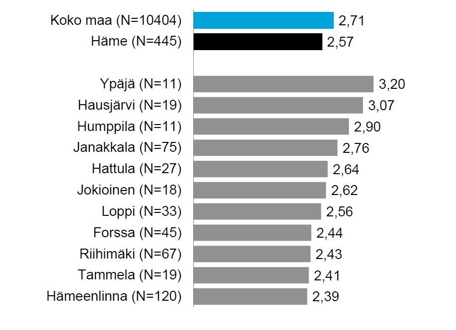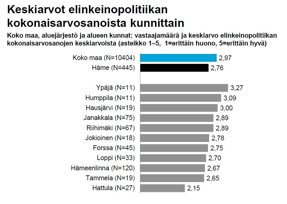 Lounais-Hämeen kunnat ovat pärjänneet aikaisemmin tutkimuksessa erityisen hyvin. Humppila oli edellisen vuosikymmenen kestomenestyjä ja sijoittui useana vuotena maan kärkikymmenikköön. Tällä kertaa valtakunnan listoille ei yltänyt yksikään hämäläinen kunta.