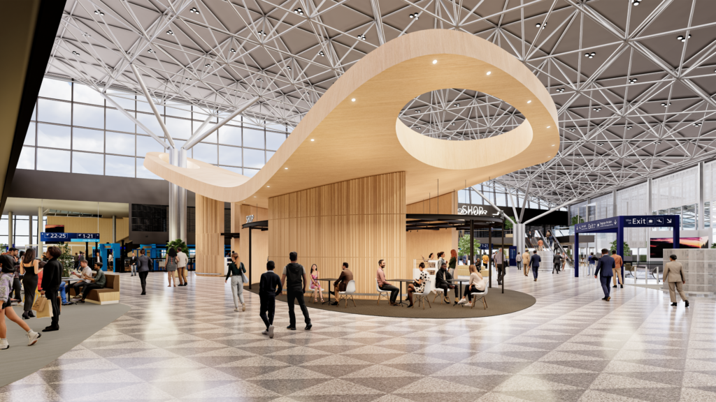 Kahvila on myös konseptin mukainen ja poikkeaa tavallisista lentokentällä nähtävistä kahviloista.