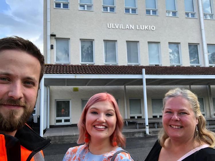 Valokuvaaja Via Ramsten sekä Rakennuspalveluyrittäjä Joona Mannonen Ulvilan Yrittäjien jäsenistöstä kävivät hallituksen edustajan tilitoimistoyrittäjä Krista Vääräkosken kanssa kertomassa yrittäjien näkökulmaa yrittäjyyskasvatuksen koulutuspäivänä Ulvilan Lukiolla