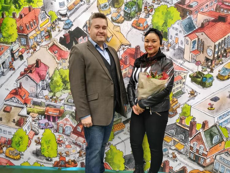 Vammalan Yrittäjät onnittelee 10 vuotiasta Sastamalaa ja kiittää kuluneiden vuosien yhteistyöstä sekä odottaa antoisaa yhteistyötä vireän kaupungin kanssa jatkossakin. Kaupunkia onnittelemassa Vammalan yrittäjien Mika Valtonen ja Anne-Marie Nieminen.