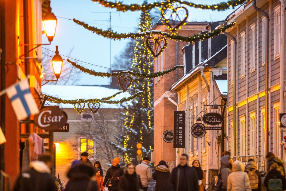 Kuva: Porvoossa joulutunnelmasta pääsee nauttimaan jouluostosten lomassa ja kaupunki on täynnä paikallisten yrittäjien liikkeitä. (Kuva: Porvoon kaupungin kuvapankki)
