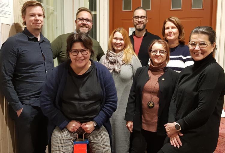 Kuvassa vasemmalta: Anssi Karppinen, Risto Huovinen, Katja Koskimies, Sami Kilponen, Minna Råman ja edessä Sari-Helena Forsman, Raija Tuominen ja Auli Lukkarila.