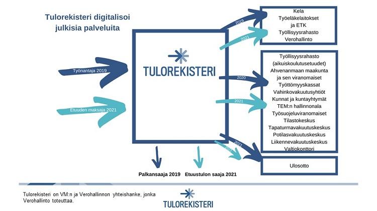 – Yrityksen tulorekisteriin ilmoittamat palkkatiedot välitetään tulorekisteristä monelle eri viranomaiselle. On tärkeää, että tiedot ovat tulorekisterissä oikein, jotta päätökset perustuvat oikeisiin tietoihin. Jos tiedoissa on virhe ja työnantaja korjaa tietoja tulorekisteriin, sillä on vaikutus moneen paikkaan. Korjaus voi vaikuttaa viranomaisten aikaisemmin työnantajille tekemiin päätöksiin, kertoo Tulorekisteriyksikön johtaja Terhi Holmström.