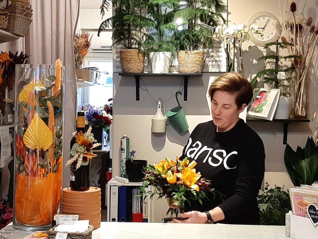 – Esimerkiksi äitienpäivänä tai jouluna ihmisiä käy paljon. Silloin adrenaliini virtaa ja sitä päivän lopussa ihmettelee, että kuinka paljon ihmisiä kävikään pienessä kukkakaupassa yhden päivän aikana. Ja kaiken sen kiireen keskellä tärkeintä on asiakkaan kohtaaminen ja se, että pystyy toteuttamaan hänen toiveensa.