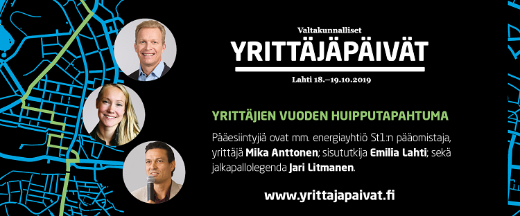 Viimeinen ilmoittautumispäivä on 6.10. Lippuja Valtakunnallisille Yrittäjäpäiville on vielä saatavilla!