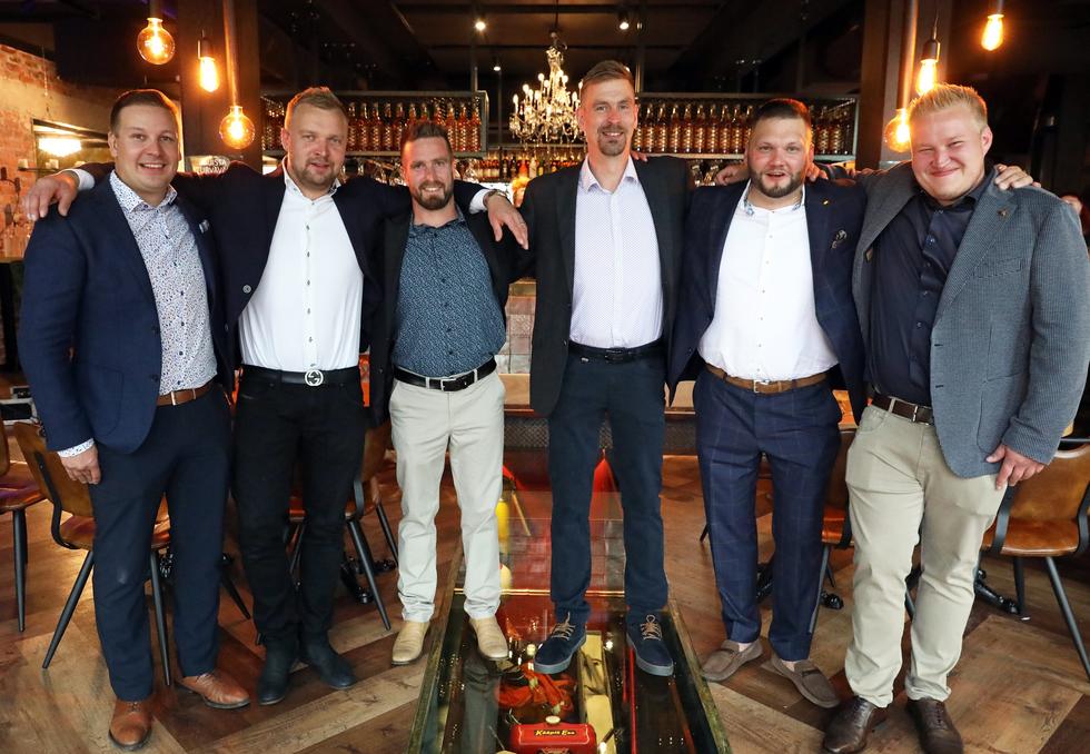 WANHA BRANKKARI on kuuden kaveruksen yhteisponnistus. Tätä varten syntyi osakeyhtiö Melkein7veljestä. Tässä porukka on kuvattu ravintolan avajaisissa. Kuvassa ovat vasemmalta oikealle lueteltuna Tommi Laurinaho, Valtteri Sivula, Juha Mustajärvi, Sami Kautto, Petri Niinimäki ja Tomi Mansikkaviita.