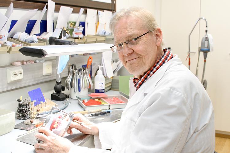 – Jokainen vuosi on ollut mielenkiintoinen. Kun ammattitaito kehittyy, on tekeminen ollut hauskaa ja erikoishammasteknikkkona näkee myös työn lopputuloksen, sanoo Pekka Kari-Koskinen.