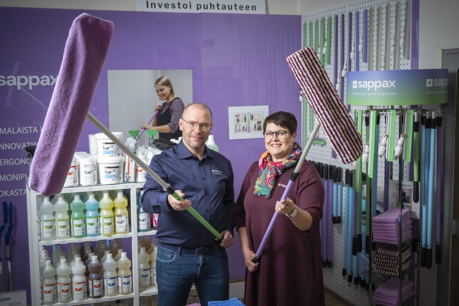Siivousvälinefirma Sappaxin Petteri ja Anu Heinonen jatkavat Petterin vanhempien yritystä. Pariskunnalla on selvä työnjako ja täysi luotto toisen tekemiseen.