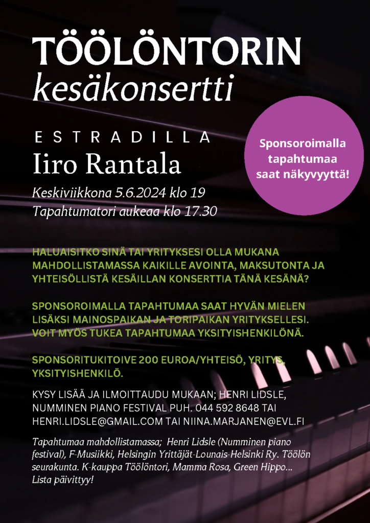 Pianokonsertti Töölöntorilla kaipaa sponsoritukea!
