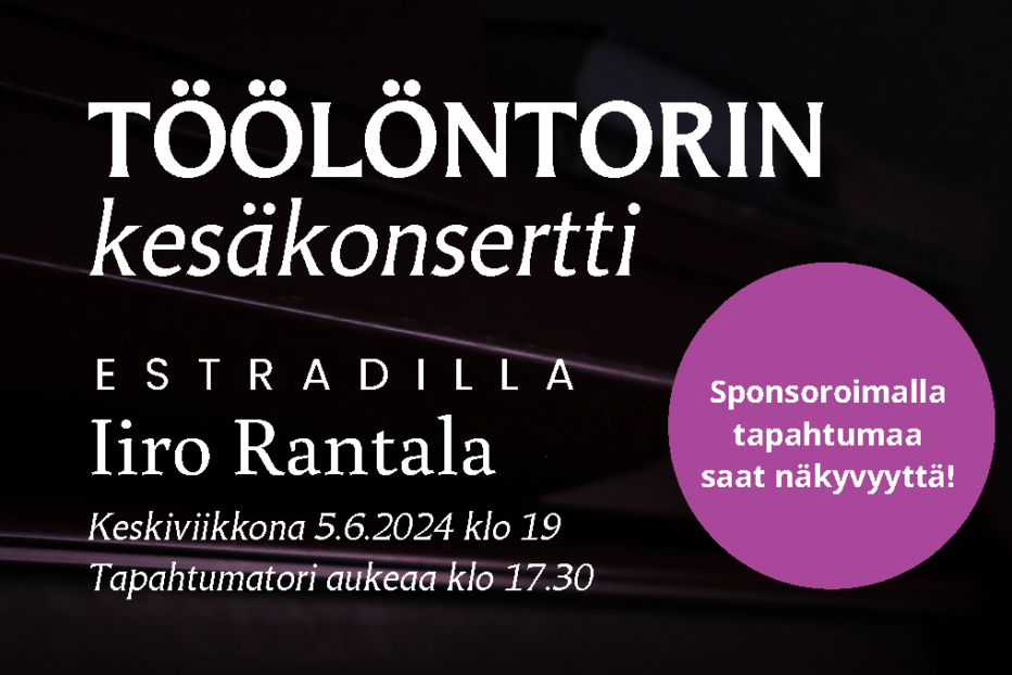 Kesän 2024 tunnelmallisin torikonsertti järjestetään Töölöntorilla keskiviikkona 5.6., jolloin estradille nousee pianon monitaituri Iiro Rantala. Torin ympäristö varataan tapahtumakäyttöön klo 17.30 alkaen, ja tapahtumaan on vapaa pääsy.