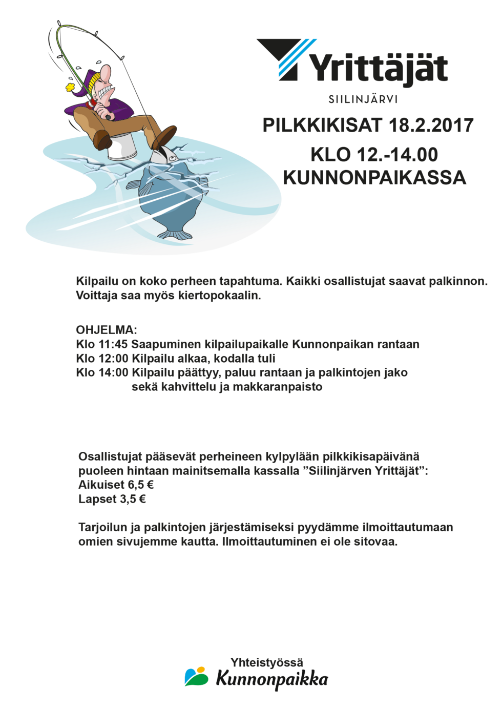 31.1.2017 klo 13:20 Uutinen #myynti PILKKIKISAT 18.2.2017 Kunnonpaikassa Tämä teksti on konekäännetty. Pilkkikisat Kunnonpaikassa SavoPrint SavoPrint Jaa Kopioitu leikepöydälle