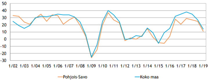 Pk-yrityksistä 29 prosenttia arvioi suhdanteiden paranevan seuraavien 12 kuukauden aikana ja 15 prosenttia uskoo niiden heikkenevän. Pienten ja keskisuurten yritysten odotukset suhdanteista ovat kuitenkin heikentyneet puolen vuoden takaisesta. Pohjois-Savon yleiset suhdannenäkymät ovat pudonneet enemmän kuin koko maassa.