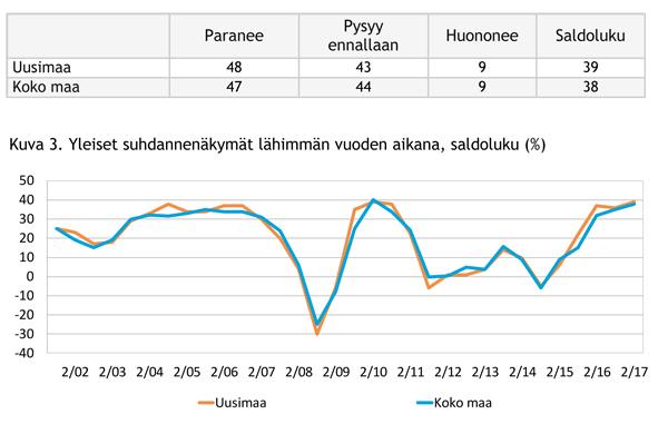 – Hienoa on, että tilanne paranee. Mutta liki kymmenen vuoden taantuman jälkeen voisi toivoa vielä vahvempia odotuksia, Uudenmaan Yrittäjien toimitusjohtaja Petri Graeffe kommentoi.
