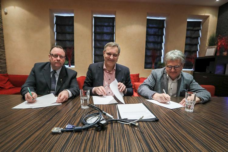 Suomen Yrittäjien toimitusjohtaja Mikael Pentikäinen ja Österbottens Företagarförening yhdistyksen hallituksen puheenjohtaja Ingemar Tåg ovat helpottuneita, kun aiesopimus on allekirjoitettu. Ruotsinkielisen yrittäjäjärjestön kuusi vuotta kestänyt ero Suomen Yrittäjistä on nyt ohi.