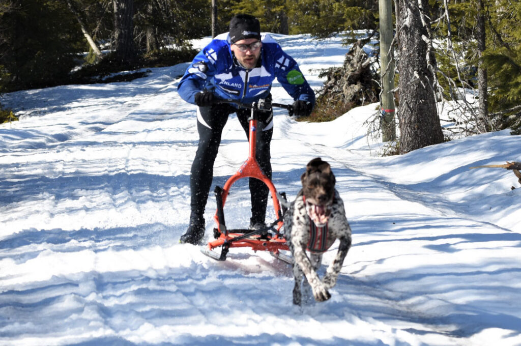 – Potkukelkka voi olla vieras, mutta uusille markkinoille voi päästä koiraharrastajien kautta. Esla Adventure -kelkkaan saa koira-adapterin, ja niille on jo kaksi kilpaluokkaakin, Lahtinen kertoo.