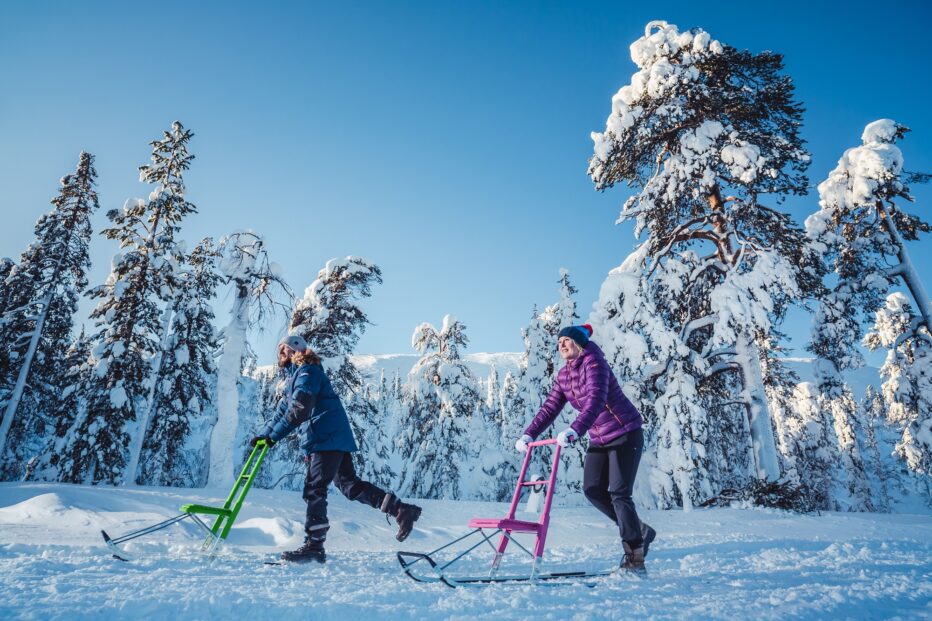 – Potkukelkka voi olla vieras, mutta uusille markkinoille voi päästä koiraharrastajien kautta. Esla Adventure -kelkkaan saa koira-adapterin, ja niille on jo kaksi kilpaluokkaakin, Lahtinen kertoo.