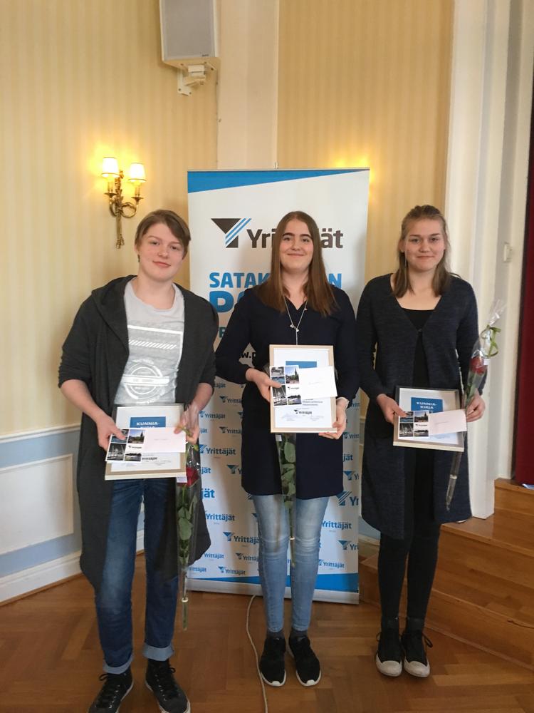 Yrittäjyysstipendit tänä vuonna jaettiin Porin Lyseon yrittäjyysluokan 9 E:n oppilaista Vertti Linholle, Malla Messolle ja Veera Virtaselle. Perusteluina stipendille mm. oppilaat ovat hoitaneet NY-yrityksensä asiat moitteettomasti aikaa ja itseään säästämättä, he ovat edustaneet luokkaa erinomaisesti Nuori Yrittäjyys-messuilla ja heidän yrityksensä ovat menestyneet myös taloudellisesti. Porin Yrittäjät sai paljon kiitoksia hyvästä ja aktiivisesta yrittäjyysyhteistyöstä Porin Lyseon kanssa. Lämpimät onnittelut yrittäjyysstipendien saajille !