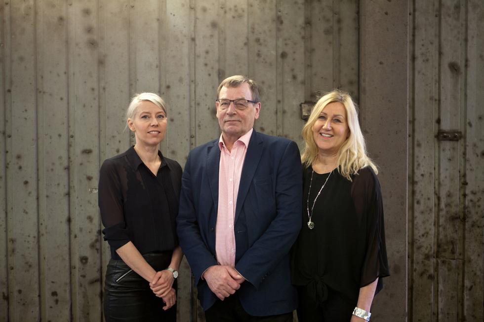 Kuvassa: Porin vuoden yrittäjäperhe 2019 Kuljetusliike Kalevi Huhtala Oy, vasemmalta oikealle toimitusjohtaja Kati Huhtala, yrityksen perustajat liikenneneuvos Kalevi Huhtala sekä Sirpa Huhtala.