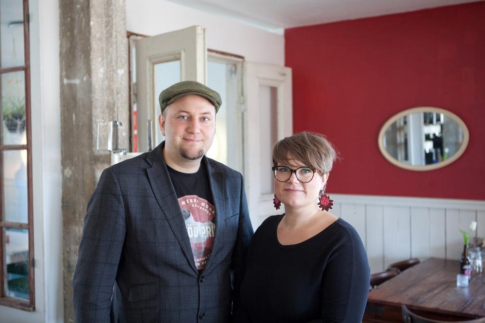Kuvassa: Gastropub Merry Monkin yrittäjäpariskunta, vasemmalla Paavo Munkki ja oikealla Porin vuoden nuori yrittäjä 2019 palkinnon saaja Maija Munkki.