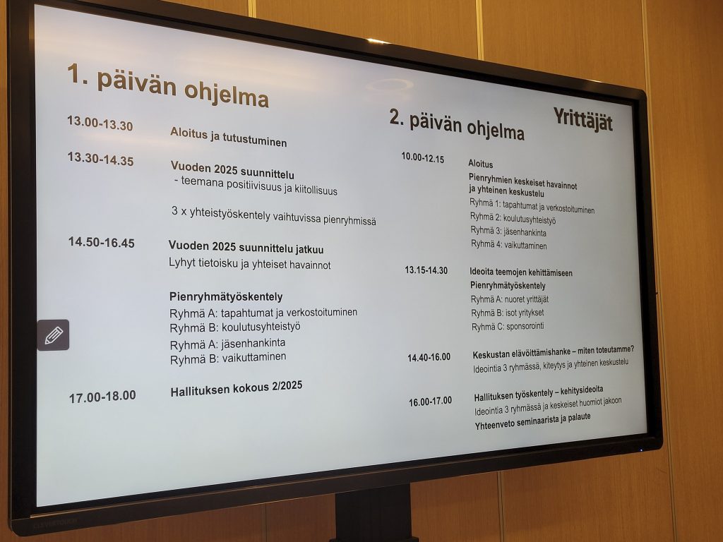 Seuraava päivä jatkui entistä kiihkeämmällä työtahdilla, huh! Pohdimme, mitä tukea nuoret yrittäjät toivovat yrittämiseensä ja miten Porvoon keskustaa elävöitetään. Ja monia muita aiheita. Täytyy todeta ensikertalaisena ja uutena hallituksen jäsenenä, että tällaista työtahtia ja jämäkkää kurinalaisuutta, kiitos tehokkaan sihteerin, en ole isojen yritysten seminaaripäivissä kokenut.