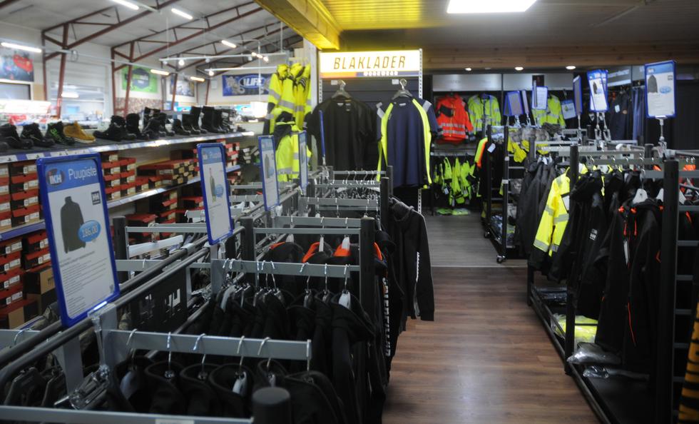 TYÖVAATTEET OVAT nekin tänä päivänä tärkeä osa liikkeen myyntiä, tietysti niitä varsinaisia koneita unohtamatta.