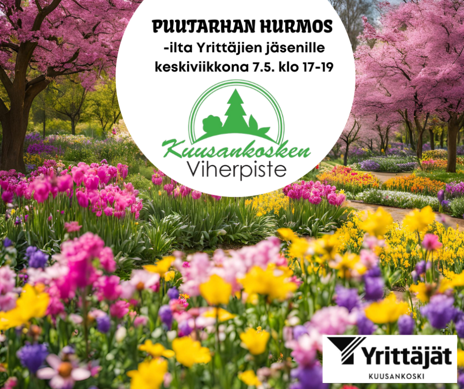 Tervetuloa keskiviikkona 7.5. Kuusankosken Viherpisteeseen verkostoitumaan ja kuulemaan kesän uusista puutarhatrendeistä. Tilaisuuteen ovat tervetulleita kaikkien yrittäjäyhdistysten jäsenet. Kahvia ja makkaraa tarjolla. Osoite on Kauppatori 1, Kuusankoski.
