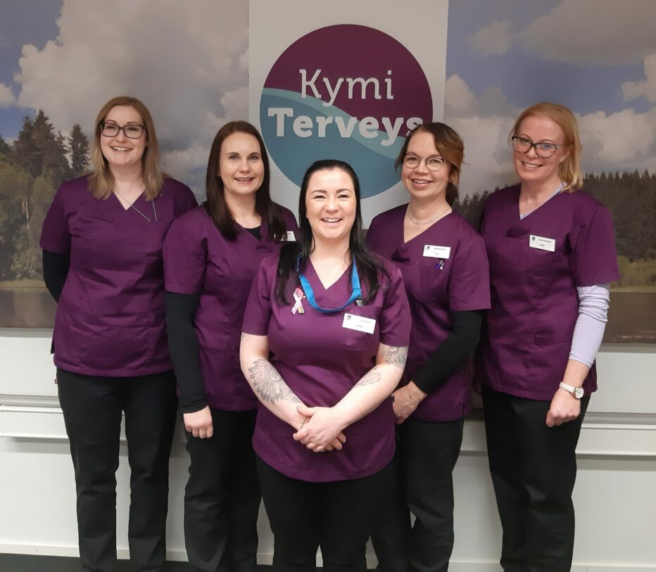 KymiTerveyden tiimiin kuuluu työterveyslääkäri, työterveyshoitaja, työterveysfysioterapeutti sekä työterveyspsykologi.