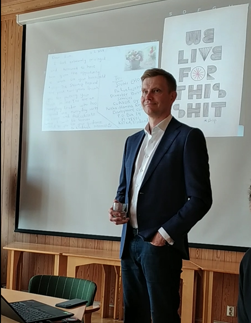 Puhuimme hankinnoista, elinkeinopolitiikasta, yrittäjyydestä, yhteistyöstä ja Kymenlaaksosta. Kuulimme hienoja esityksiä hankinnoista, elinkeinopolitiikasta, yrityksen kasvusta ja kehityksestä, onnistumisesta ja epäonnistumisesta.
