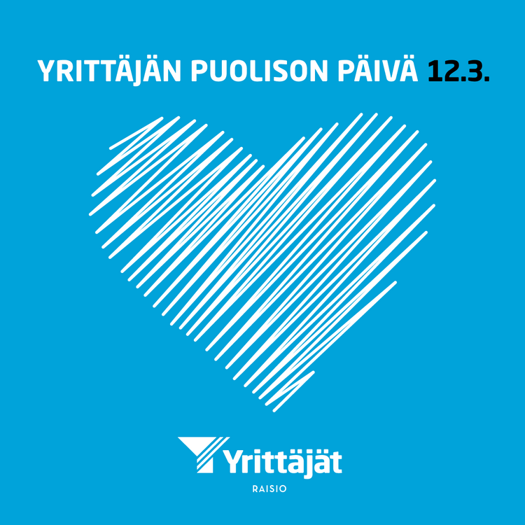Yrittäjän päivää on vietetty 5.9. vuodesta 1997 alkaen. Yrittäjä on päivänsä ansainnut, mutta niin on myös yrittäjän taustajoukot. Raision Yrittäjät lanseerasikin viime keväänä uuden Yrittäjän puolison päivän, jota juhlitaan tänäkin vuonna – ja toivottavasti aina tulevaisuudessa – 12.3.
