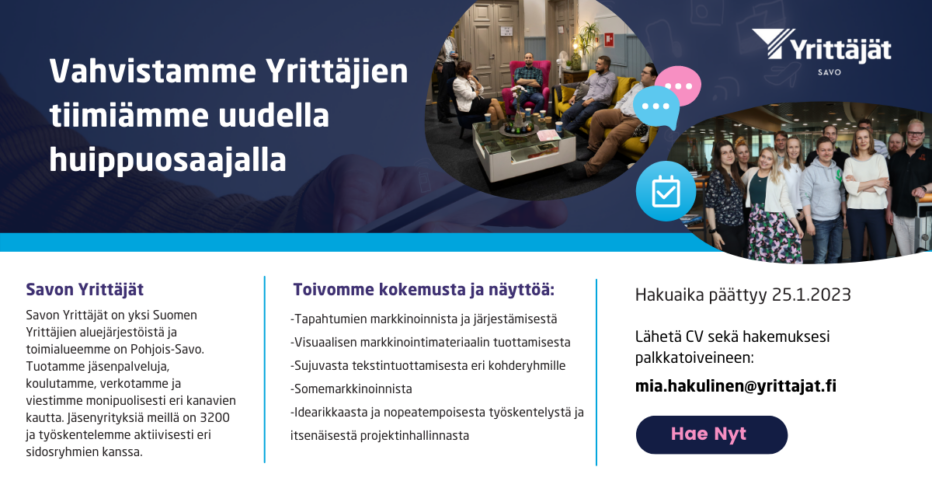 Rekry: Vahvistamme Yrittäjien tiimiämme uudella osaajalla