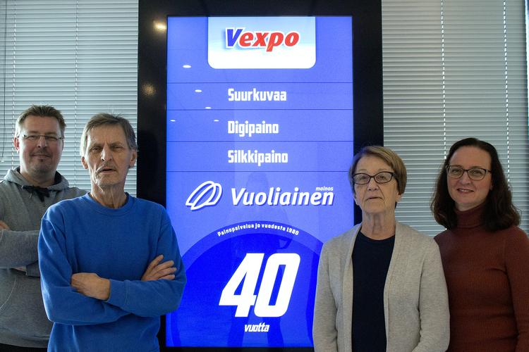 Riihimäellä toimiva Vuoliainen perustettiin 1.10.1980. Liisa ja Pekka Marttila loivat perheyrityksen, jonka toimiala lähti silkkipainosta ja vuosien saatossa osaaminen on laajentunut. Kilpailu on vuosien mittaan koventunut ja alan teknologia on kehittynyt valtavin harppauksin. Vuosi 2020 on Marttilan perheyritykselle suuri vuosi koska yrityksessä juhlitaan 40-, 50- ja 70-vuotissyntymäpäiviä.