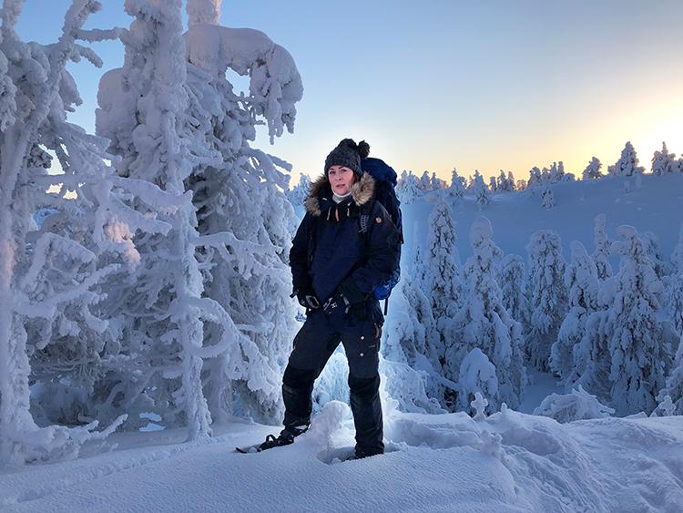 Kuusamon 850 000 vuosittaista matkailijaa näkyy myös yksinyrittäjien asiakasmäärissä. Retkeily-yrittäjä Piritta Liikka luo turisteille unohtumattomia muistoja viemällä heidät lumikenkäilemään kuutamoon tai auringonlaskuun.