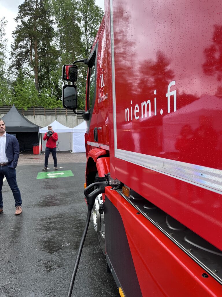 Niemi Palveluiden parkkipaikalle kaartaa uutuuttaan hohtava kuorma-auto. Se pitää sisällään uusinta sähköistä teknologiaa.