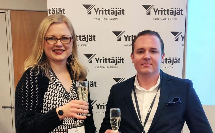 Kuvassa: Paimion Yrittäjien Salla Axelin ja Ville Kivelä Aluevaikuttaja I -risteilyllä tammikuussa.