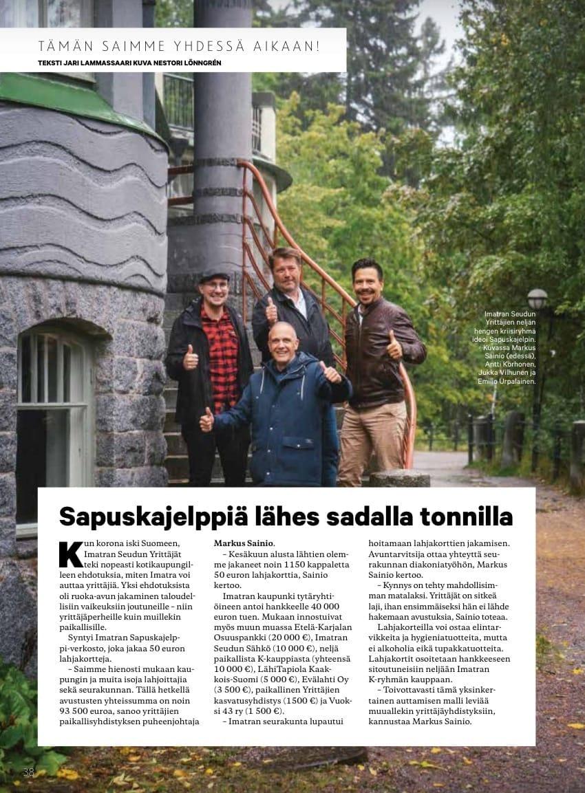 27.10.2020 klo 09:02 Uutinen #yrittäjänarki Sapuskajelppi Yrittäjälehdessä Tämä teksti on konekäännetty. Jaa Kopioitu leikepöydälle