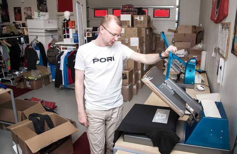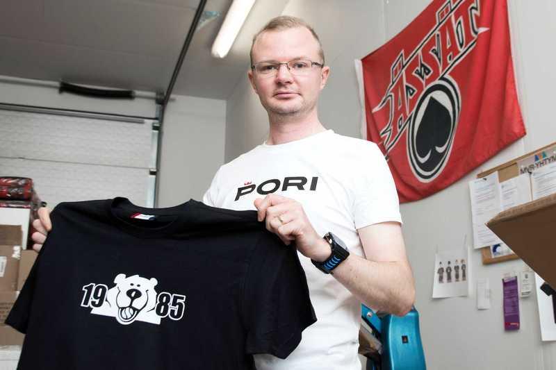 Riku Hekkala on ylpeä uuden Pori-brändin tuotteista. Nimikkopaidat ovat saaneet runsaasti positiivista palautetta.