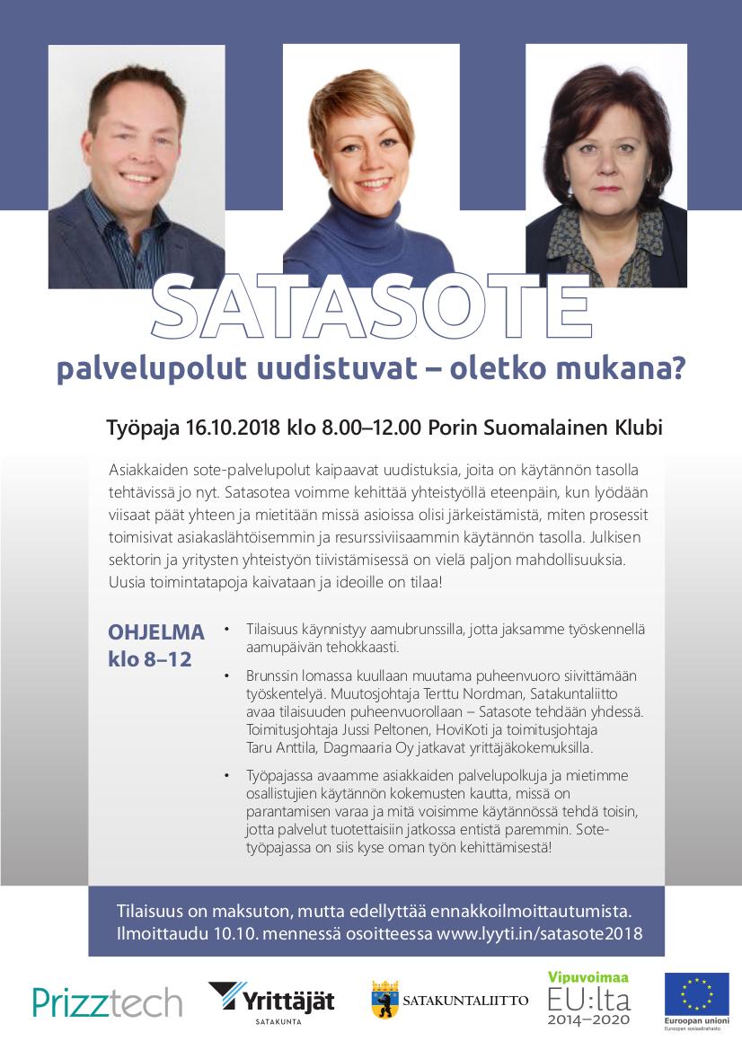 Asiakkaiden sote-palvelupolut kaipaavat uudistuksia, joita on käytännön tasolla tehtävissä jo nyt. Satasotea voimme kehittää yhteistyöllä eteenpäin, kun lyödään viisaat päät yhteen ja mietitään missä asioissa olisi järkeistämistä, miten prosessit toimisivat asiakaslähtöisemmin ja resurssiviisaammin käytännön tasolla. Julkisen sektorin ja yritysten yhteistyön tiivistämisessä on vielä paljon mahdollisuuksia. Uusia toimintatapoja kaivataan ja ideoille on tilaa!
