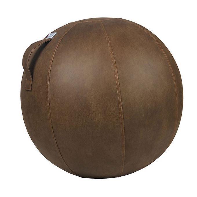 Pallo on painotettu niin, että se ei karkaa istujan alta. Tuotteita myydään kankaisena ja nahkaisena.