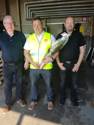 Oriveden yrittäjät kävivät kukittamassa huoltamoyrittäjän Janne Liskin (keskellä), josta tuli myös Oriveden yrittäjien uusi jäsen.